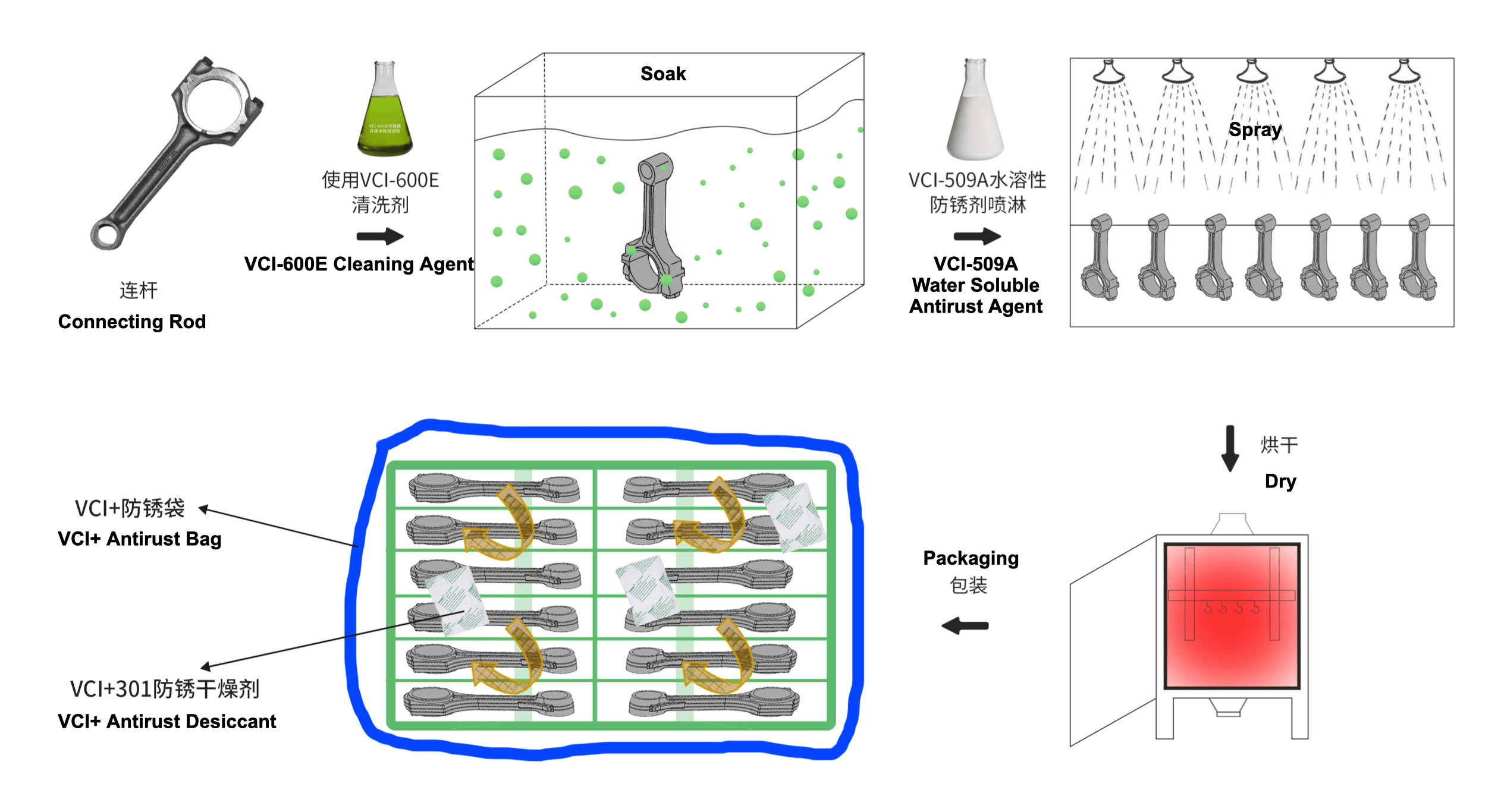 2. Verwenden Sie das wasserlösliche Rostschutzmittel VCI-509A, das Antirut-Öl ersetzt und die Erkennung von Produktinformationen verbessert.